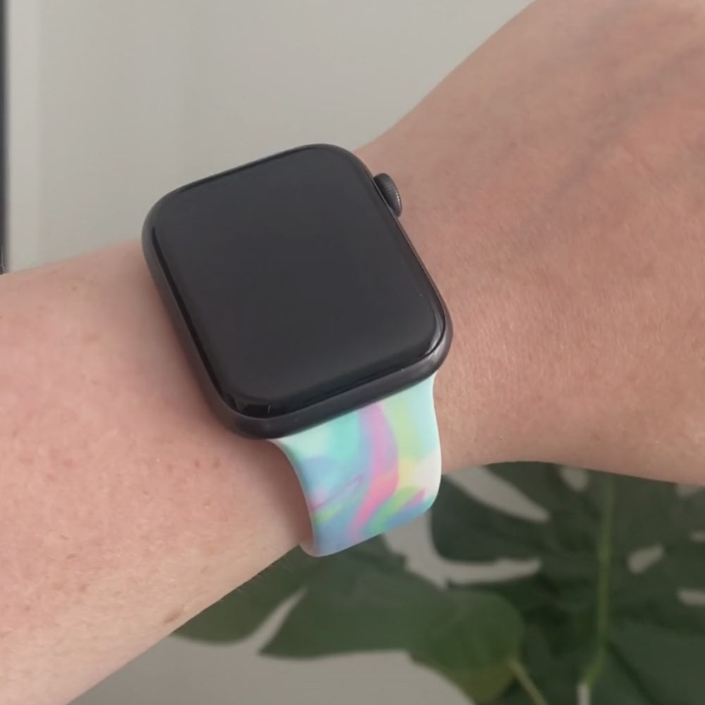 The Holo Bubble Apple Watch Strap is the perfect way to level up your tech-savvy look. This strap features a holographic iridescent design, the ultimate look for our 90s babes.