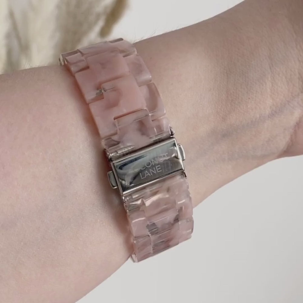 Our Luxe Pink Clouds Apple Watch strap is a dreamy and chic accessory for Apple Watch wearers. Crafted from durable resin, this girly and cute strap is perfect for adding a touch of femininity to your look.
