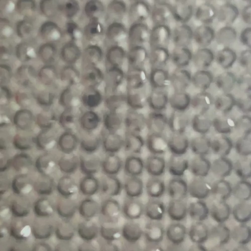 A close-up of a smartphone encased in Coconut Lane’s Disco Sparkle Phone Case - Black, resting on a silver, glittery surface. Both the extra protective case and the surface are adorned with scattered round, shimmering rhinestones.