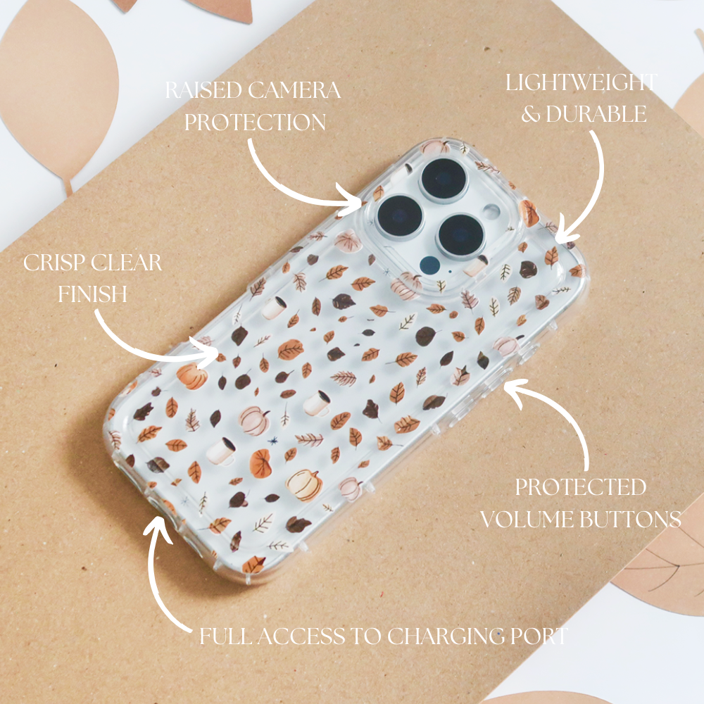 Our Clear Phone Case – Pumpkin Latte is a cosy little nod to everyone’s favourite seasonal treat. With a sweet pumpkin latte design in warm, spiced tones, it’s like wrapping your phone in a knitted jumper.