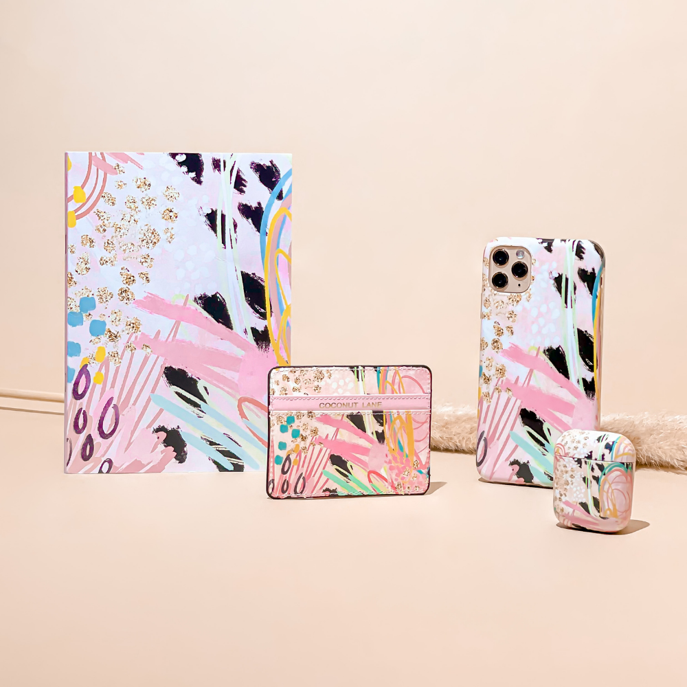 This unique asymmetrical print is the perfect design for our sophisticated gals looking for something a little different. If you love arty, watercolour prints, our new dreamy Card Holder will be right up your street. Of course, we haven't forgotten to add our Coconut Lane signature pink strip.
